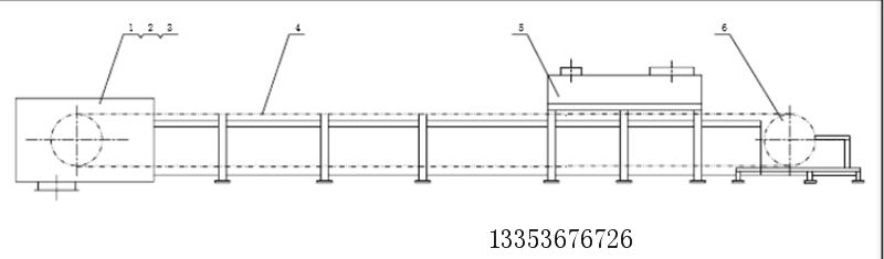 2、機尾部分采用彈簧螺旋張緊裝置,可使牽引鏈條的張緊力自動調整,特別適合遠距離、重載荷的輸送機;