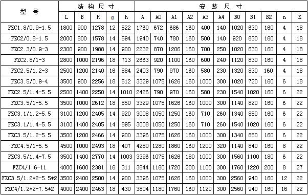 FZC系列振動出礦機技術特性及埋設參數(表一)