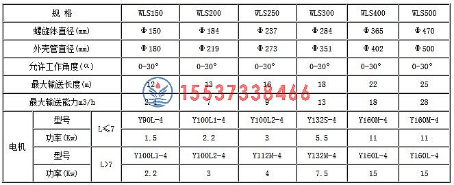無軸螺旋輸送機(jī)參數(shù)表如下:
